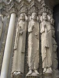 A princípio, as estátuas eram alongadas e não possuíam qualquer movimento, com um acentuado predomínio da verticalidade, o que praticamente as fazia desaparecer. A rejeição à frontalidade é considerado um aspecto inovador e a rotação das figuras passa a idéia de movimento, quebrando o rigorismo formal.